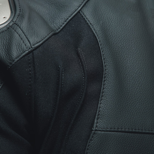 La giacca da moto Sportiva di Dainese è realizzata in morbida e resistente pelle bovina Tutu e dotata di protezioni Pro-Armor che offrono la massima protezione mantenendo flessibilità e libertà di movimento. Inoltre, oltre il 40% della sua superficie è ventilata. La protezione sulle spalle è abbinata anche a piastre in alluminio sostituibili all'esterno: una speciale tecnologia Dainese che facilita lo scorrimento in caso di caduta e previene pericolosi ribaltamenti sull'asfalto. Per aumentare ulteriormente la flessibilità e il comfort di guida, la struttura in pelle presenta inserti in tessuto elasticizzato S1 a 2 vie sui fianchi e all'interno delle braccia, oltre alla tecnologia microelastica sul retro, che migliora la libertà di movimento. Sportiva di Dainese è dotata di una tasca posteriore per il retrofit opzionale di un paraschiena, una chiusura a Velcro per regolare la vestibilità ai fianchi e due prese d'aria laterali che forniscono un raffreddamento ottimale in caso di aumento della temperatura. Ciò è supportato dal rivestimento traspirante Nanofeel® con trattamento agli ioni d'argento.