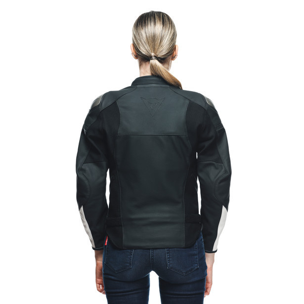 La giacca moto in pelle da donna Dainese Rapida Lady è studiata per adattarsi all'anatomia del corpo femminile e fornire un ottimo equilibrio tra comfort e assetto sportivo.