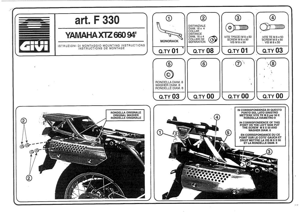 Specifico per Yamaha XTZ 660 Tenerè ('94)