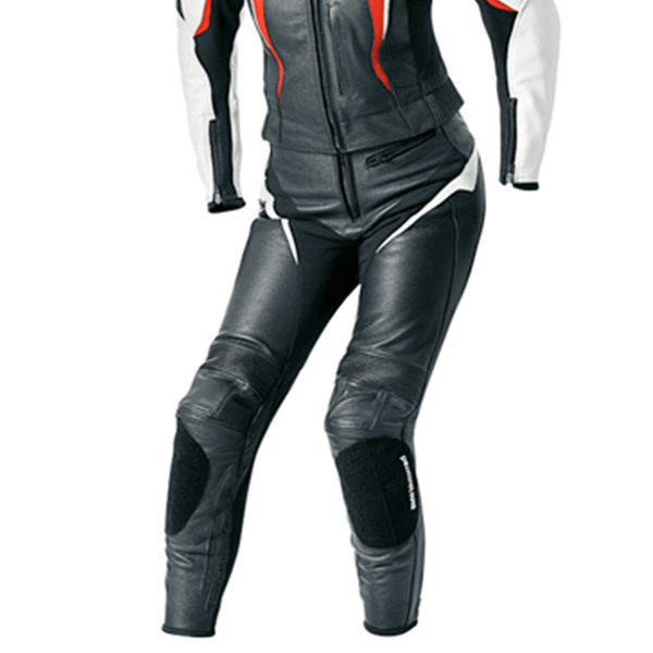 Questo pantalone in pelle ha un taglio molto sportivo, senza limitazioni nel comfort. Confezionato con particolari derivati dal mondo delle corse, come i protettori articolazioni cuciti saldamente e slider per le ginocchia inseribili a posteriori. Dispone pure di ottime caratteristiche orientate al comfort, come gli innumerevoli inserti elasticizzati in pelle e la pelle traforata. Disponibile anche per donna.