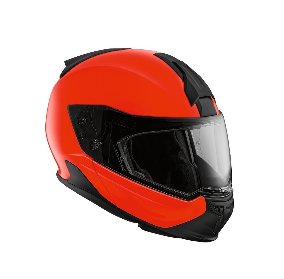 Il casco modulare si basa su un meccanismo a quattro snodi e può essere trasformato in un casco jet BMW in modo rapido e senza attrezzi. L'apertura della mentoniera si effettua con un bottone centrale.