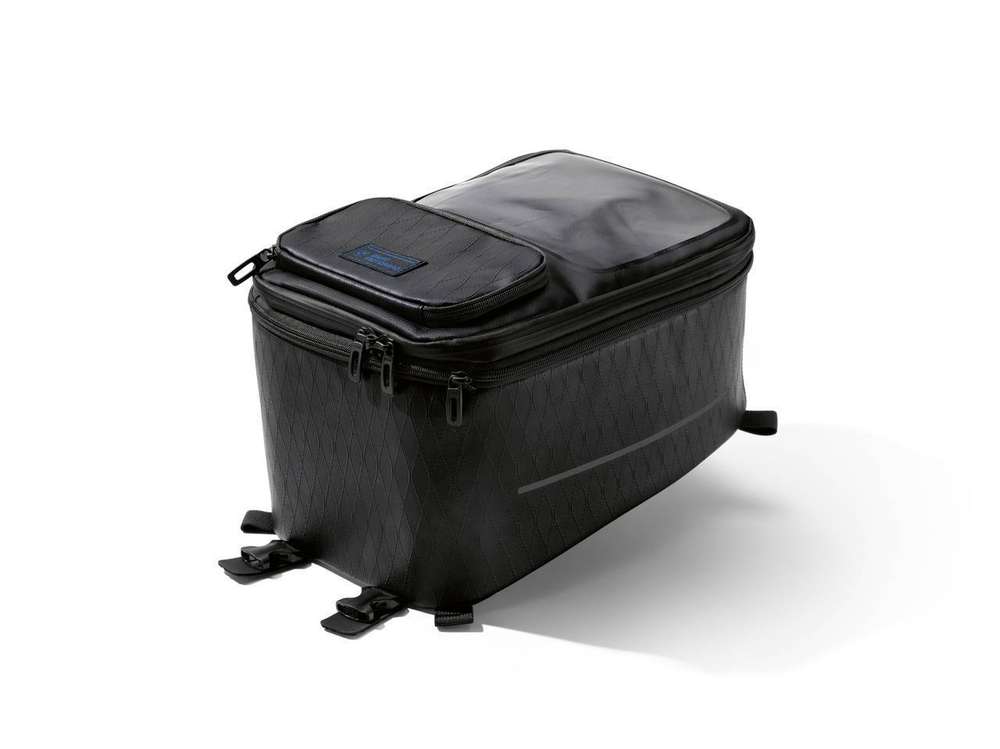 BORSA DA SERBATOIO BLACK COLLECTION, GRANDE (GS/ADV LC ) La borsa da serbatoio grande, realizzata in resistente tessuto di poliestere rivestito in TPU, con borsa interna impermeabile ed estraibile e attacchi per le cinghie, è caratterizzata da dettagli intelligenti quali il passaggio dei cavi o lo scomparto trasparente sensibile al tatto. Lo spazio di stivaggio si può ampliare da 13 a 18 litri.