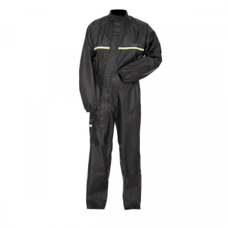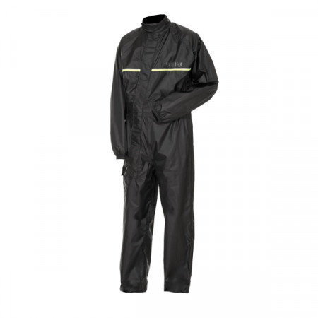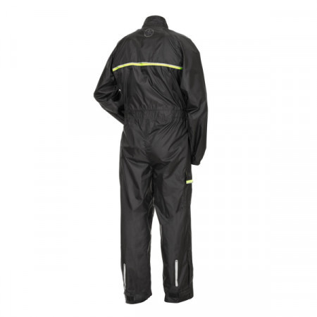 tuta antipioggia con polsini elastici nera/gialla con inserto catarinfrangente
