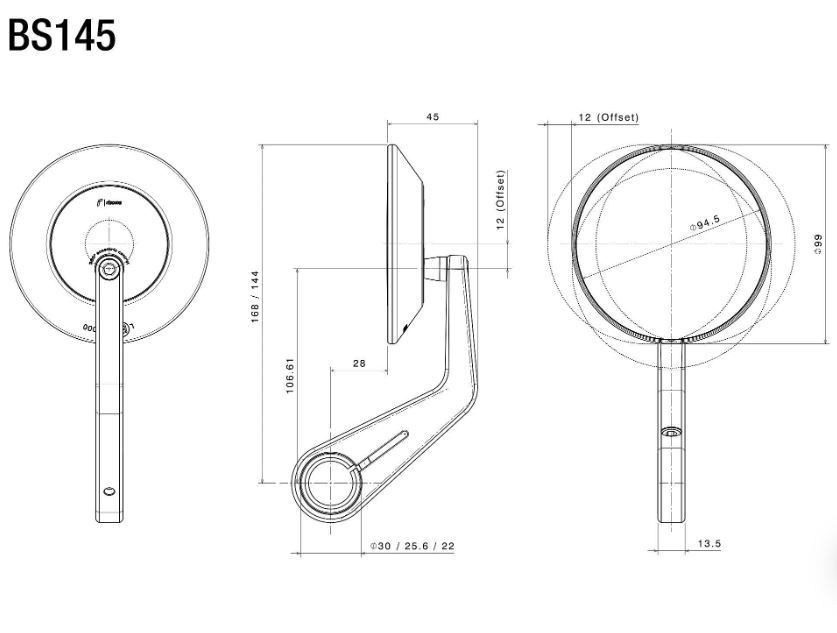 Confezione: specchio singolo. Può essere montato sia a sinistra che a destra. Per la corretta installazione è necessario acquistare il terminale manubrio e adattatore abbinato Rizoma MA433/434, il quale è compatibile con tutti i manubri forati con diametro interno da 13,5 a 20mm, o con filettatura M6.