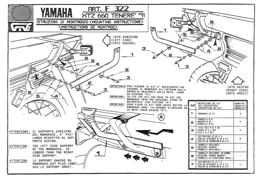 GIVI Attacco posteriore specifico per bauletto Yamaha XJ 900 Diversion (94 > 05)